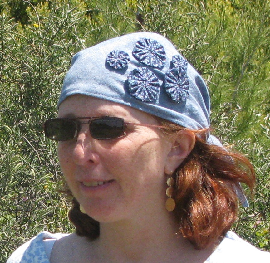 Denim Head Scarf with Yo-Yos