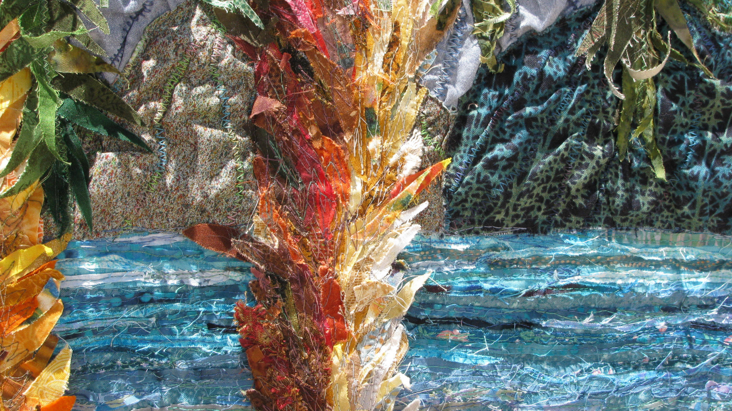 Lake water and palm tree made of snippets